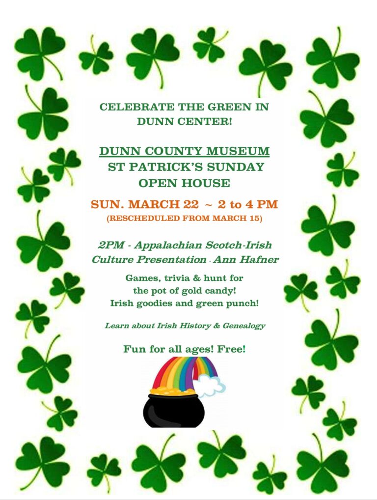 Dunn County Genealogy Club ~ Next Meeting: Sunday March 22, 2026 – 2 PM